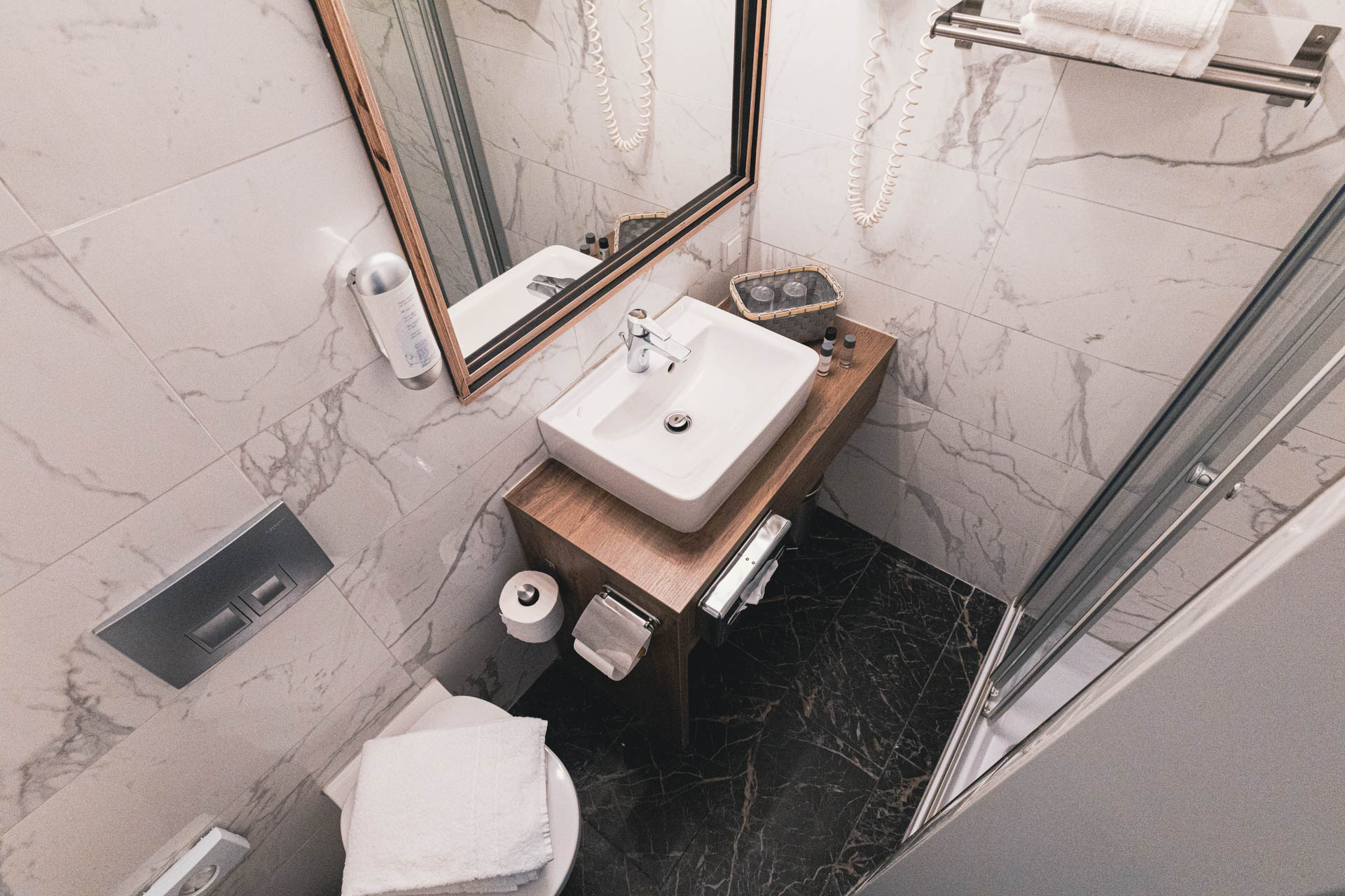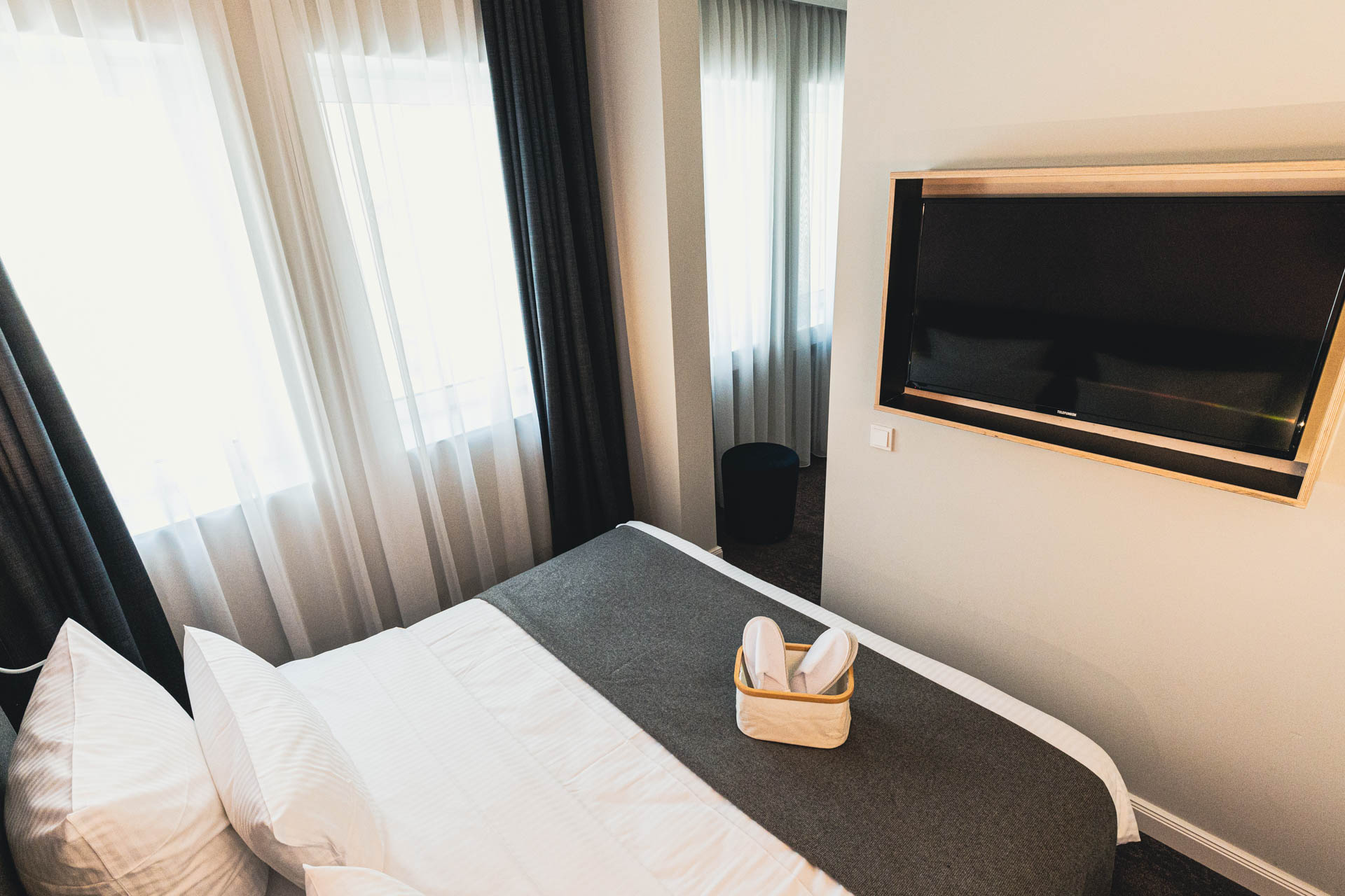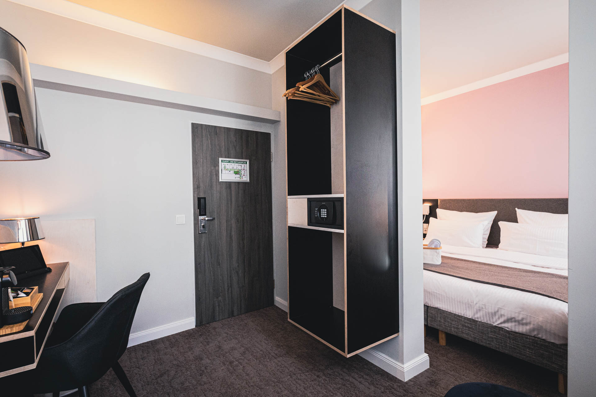 Unsere Mini Doppelzimmer bieten auf ca. 14 - 16 m² ein modernes Ambiente. Design und Komfort spiegeln sich in allen Details wider.